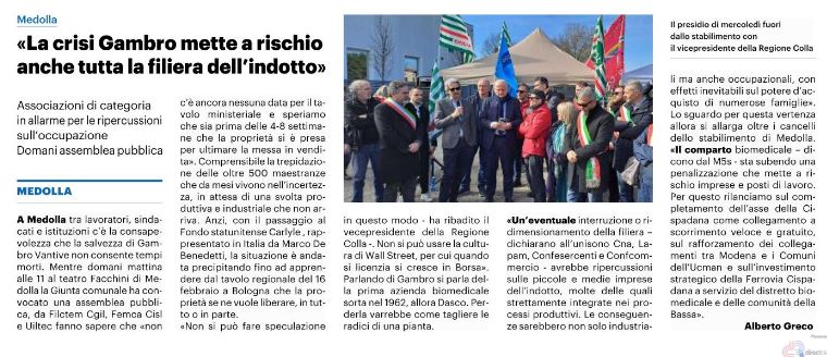 Mirandola, 20 febbraio 2026Rassegna stampaCONFESERCENTI MODENA“La crisi Gambro mette a rischio anche tutta la filiera dell’indotto”20/2/26 – Resto del Carlino