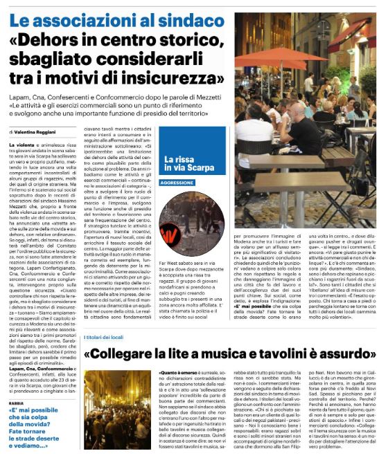 Modena, 15 ottobre 2025Rassegna stampaCONFESERCENTI MODENALe associazioni al sindaco: “Dehors in centro storico, sbagliato considerarli tra i motivi di insicurezza”15/10/25 – Resto del Carlino