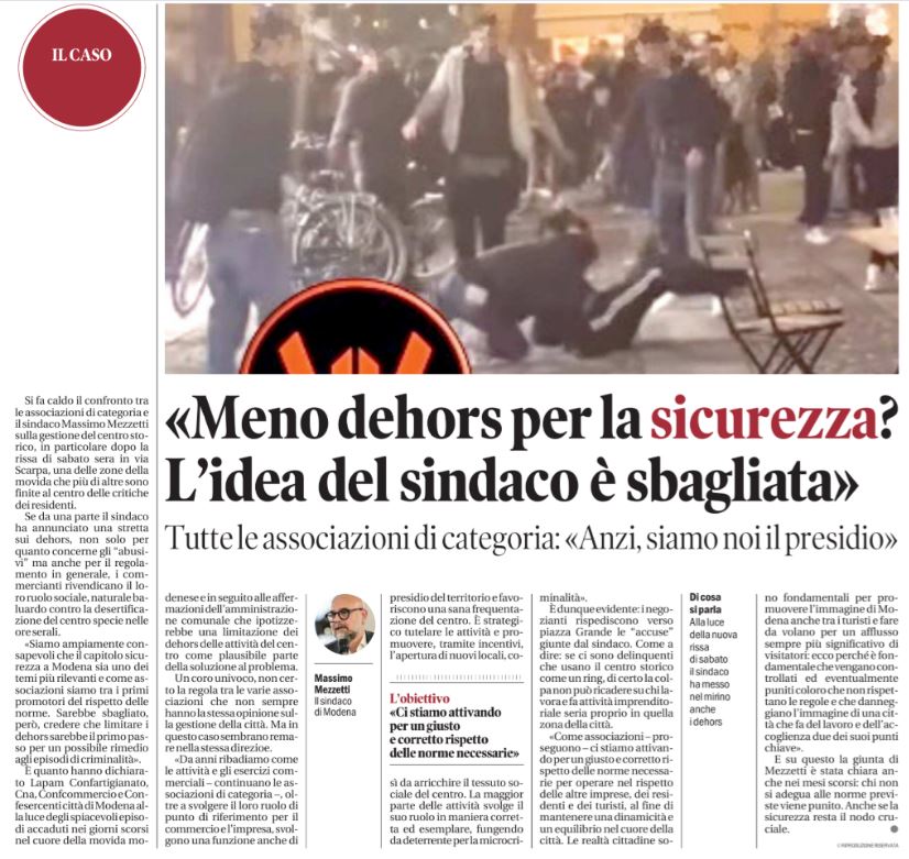 Modena, 15 ottobre 2025Rassegna stampaCONFESERCENTI MODENA“Meno dehors per la sicurezza? L’idea del sindaco è sbagliata”15/10/25 – Gazzetta di Modena