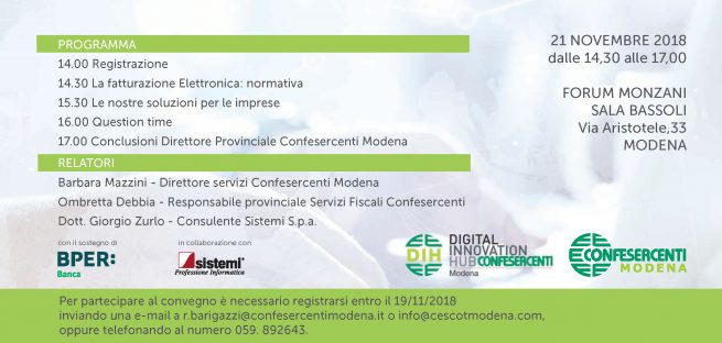 MERCOLEDI’ 21 NOVEMBRE 2018, INIZIATIVA CONFESERCENTI MODENA