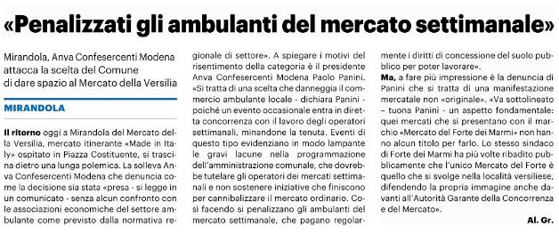 Mirandola, 1 marzo 2026Rassegna stampaCONFESERCENTI MODENA“Penalizzati gli ambulanti del mercato settimanale”01/3/26 – Resto del Carlino