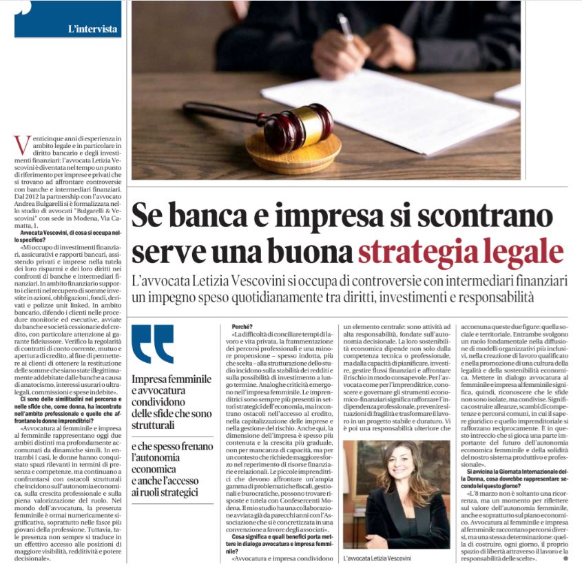 Modena, 4 marzo 2026Rassegna stampaCONFESERCENTI MODENASe banca e impresa si scontrano serve una buona strategia legale 4/3/26 – Gazzetta di Modena